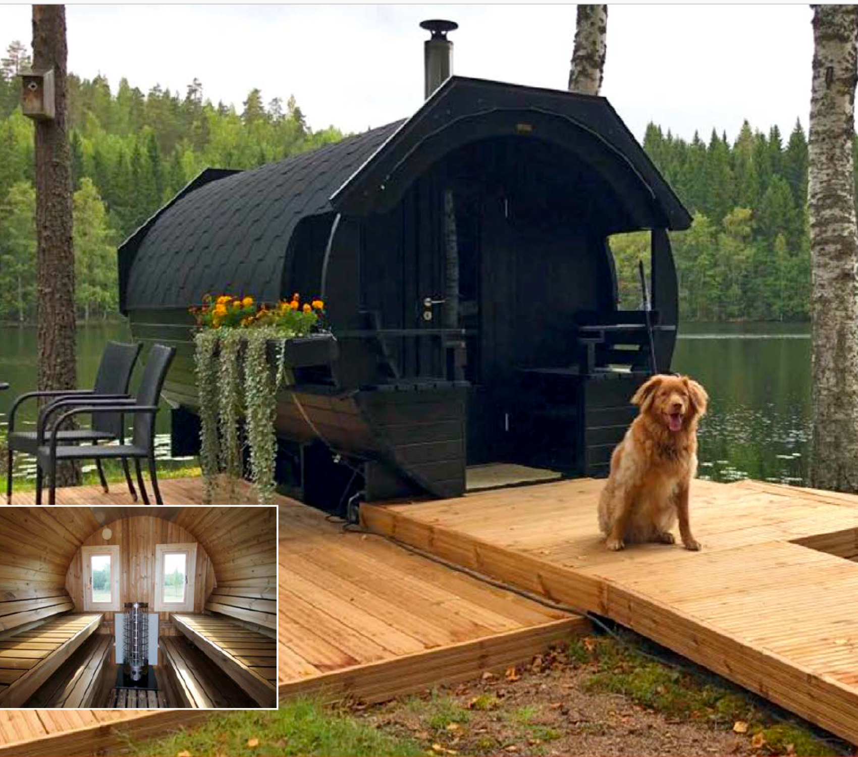 Barrel sauna Valter is een kant-en-klare sauna. Het is hetzelfde model als Alex, maar groter. Je kunt hem gemakkelijk plaatsen waar je maar wilt in je tuin. De sauna biedt plaats aan maximaal 6 personen tegelijkertijd. De kachel van de sauna wordt verwarmd met hout en door de ronde vorm zal stoom zich gelijkmatig door de ruimte verspreiden. Ga dus gewoon op de bankjes zitten en geniet van je tijd in een echte Finse sauna. Valter is verkrijgbaar in twee verschillende modellen: standaard en delux. Het Delux-model heeft een breed panoramisch raam aan de achterkant van de loop. Op deze manier kunt u de schoonheid van de natuur zien terwijl u ontspant